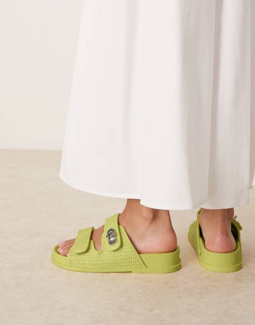 ASOS DESIGN - Fawn - Sliders color lime con chiusura con girello e plantare