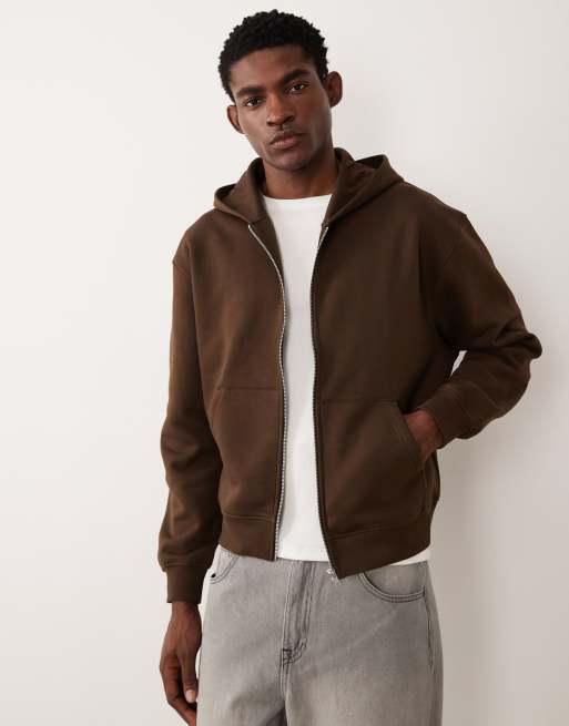 ASOS DESIGN - Felpa basic marrone squadrata e comoda con cappuccio e zip