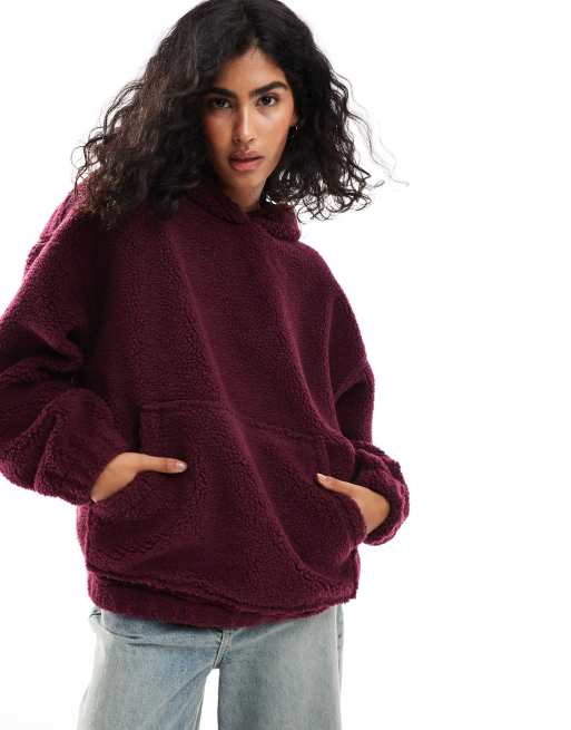 ASOS DESIGN - Felpa bordeaux oversize in pile borg con cappuccio