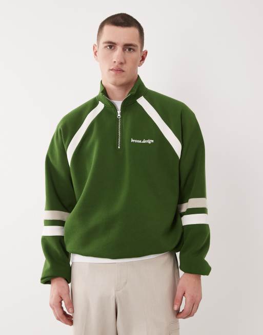 ASOS DESIGN - Felpa comoda verde con zip corta e pannelli cut & sew