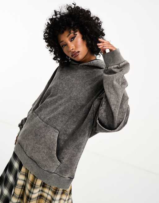 ASOS DESIGN - Felpa con cappuccio antracite slavato a doppio strato
