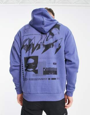 ASOS DESIGN - Felpa con cappuccio oversize blu con stampa "Street" sul retro e scritta sul davanti