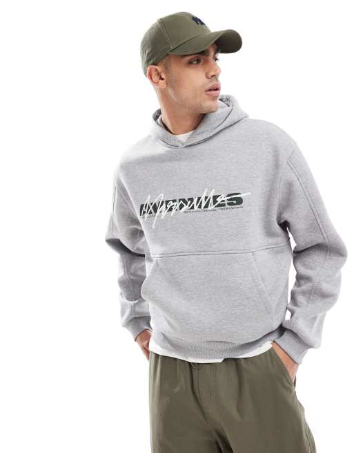 ASOS DESIGN - Felpa con cappuccio oversize grigio mélange con stampa