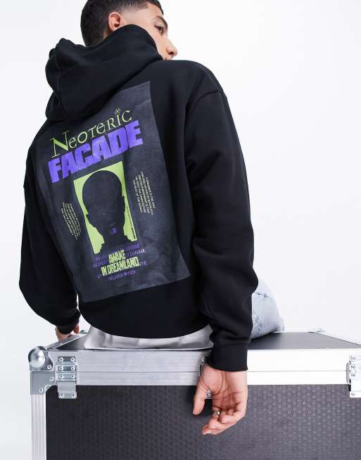 ASOS DESIGN - Felpa con cappuccio oversize nera con stampa gotica sulla schiena