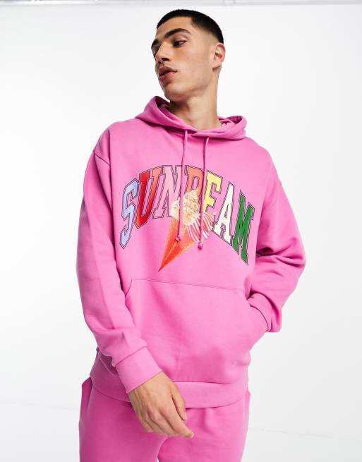 ASOS DESIGN - Felpa con cappuccio oversize rosa con stampa fotografica di gelato in coordinato
