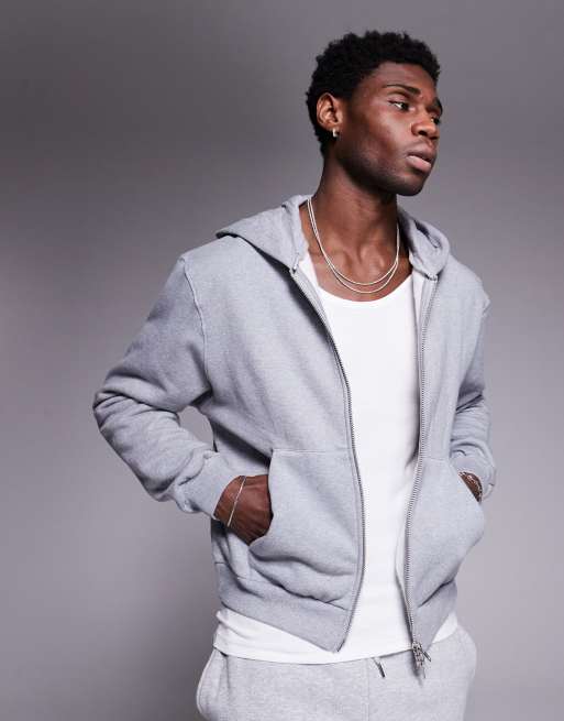 ASOS DESIGN - Felpa con cappuccio premium oversize squadrata pesante 400 gsm grigio mélange con zip