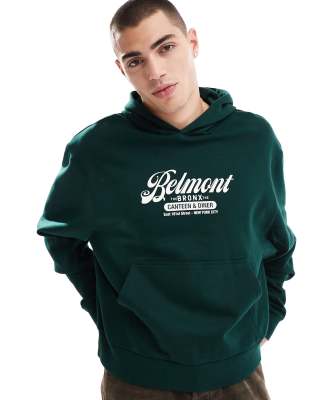 ASOS DESIGN - Felpa con cappuccio squadrata verde con stampa "Belmont"