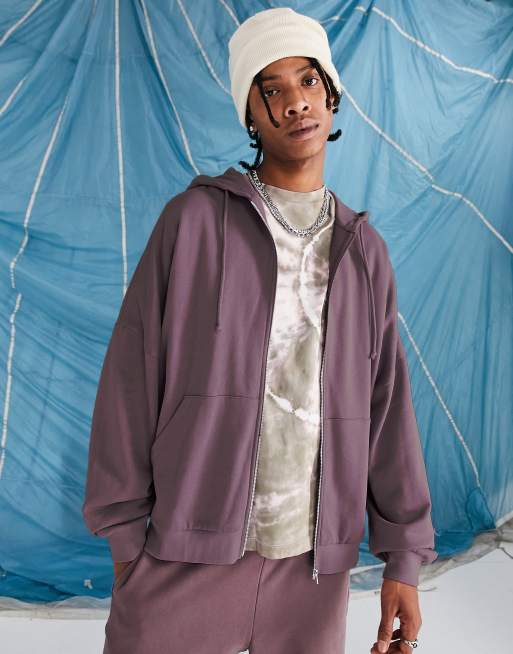 ASOS DESIGN - Felpa con cappuccio super oversize e zip viola slavato