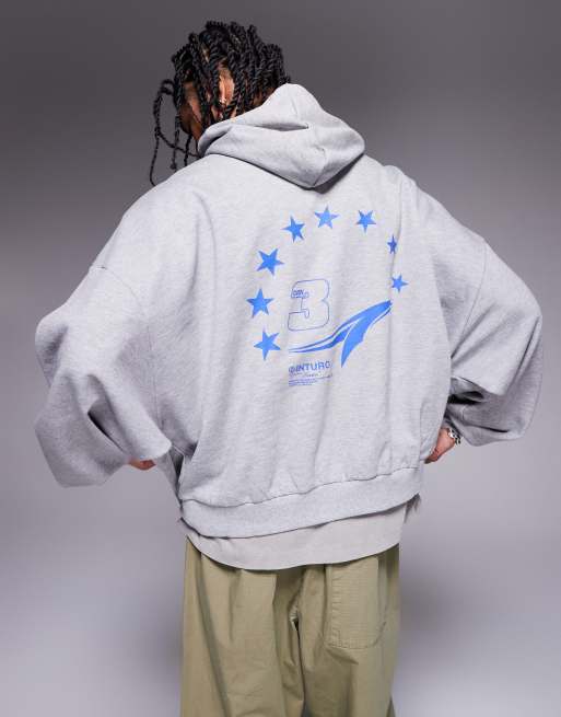 ASOS DESIGN - Felpa con cappuccio super oversize grigio mélange con stampe