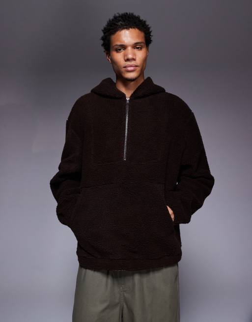 ASOS DESIGN - Felpa con cappuccio super oversize marrone in pile borg con scollo a imbuto