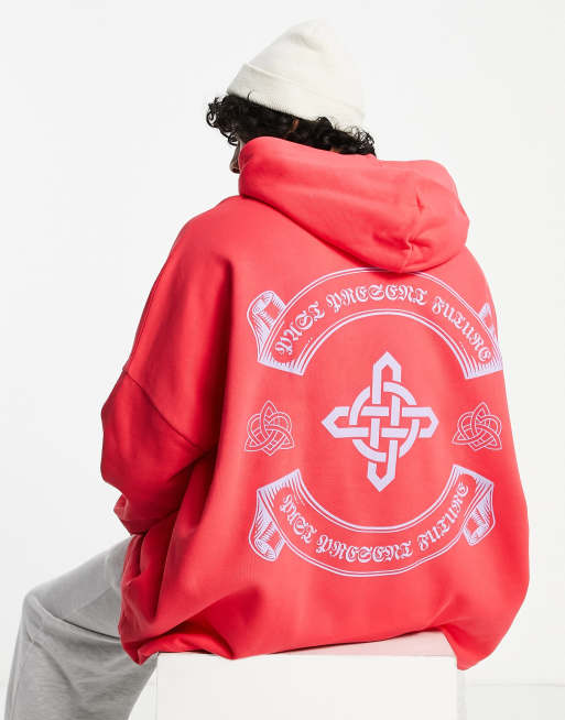ASOS DESIGN - Felpa con cappuccio super oversize rossa con stampe gotiche