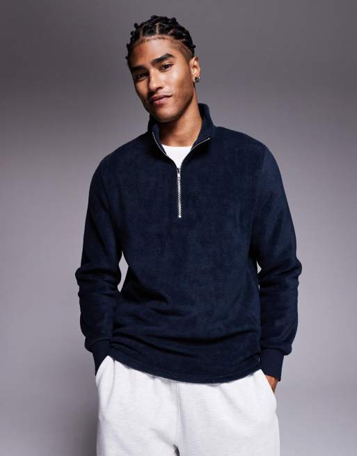 ASOS DESIGN - Felpa con collo a imbuto e zip corta in pile blu navy