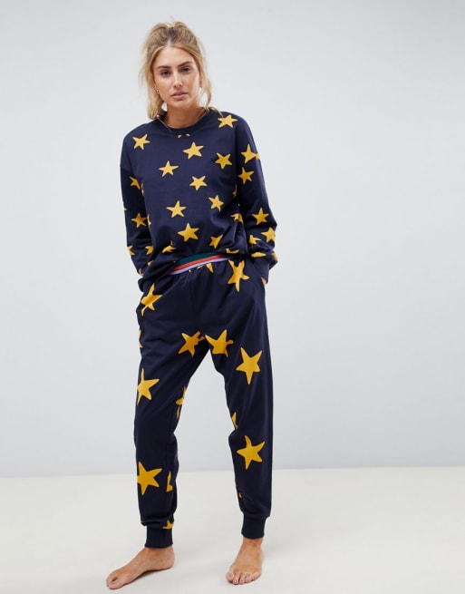 ASOS DESIGN - Felpa e joggers oversize da casa con stampa di stelle ed elastico a contrasto