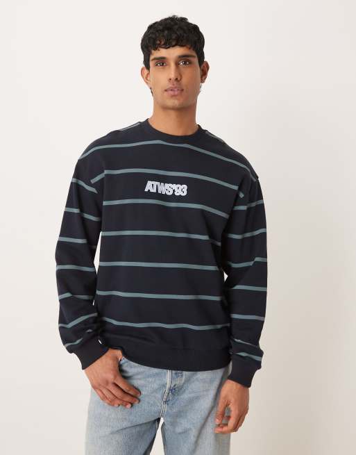 ASOS DESIGN - Felpa girocollo vestibilità comoda color blu navy a righe con scritta stampata