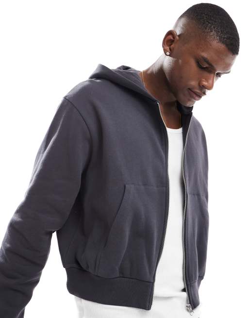 ASOS DESIGN - Felpa grigia squadrata con cappuccio, spalle scese e zip