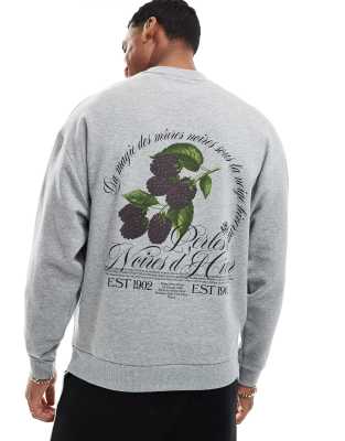 ASOS DESIGN - Felpa grigio mélange con stampa di frutta
