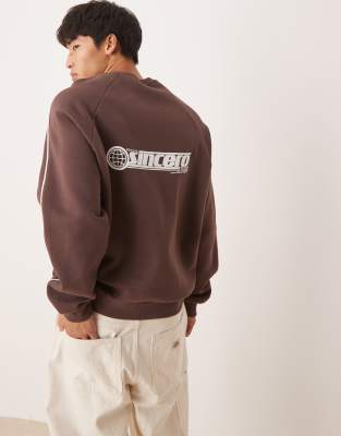 ASOS DESIGN - Felpa marrone con stampa sportiva