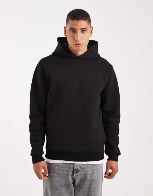ASOS DESIGN - Felpa nera con cappuccio in tessuto stile scuba