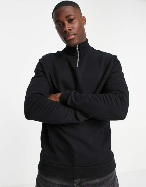 ASOS DESIGN - Felpa nera con zip corta - BLACK