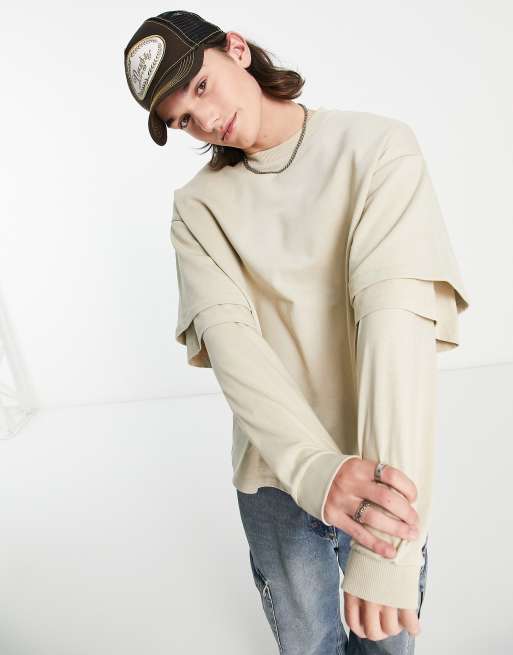 ASOS DESIGN - Felpa oversize a doppio strato crema