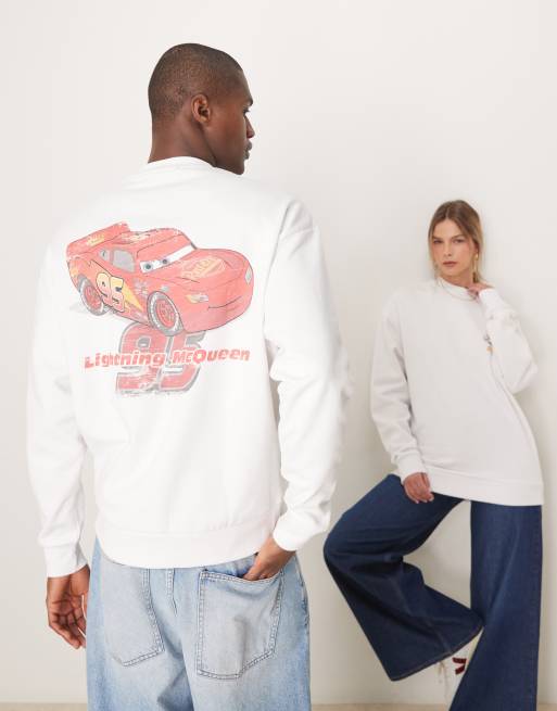 ASOS DESIGN - Felpa oversize bianca con stampa Disney Pixar di Saetta McQueen di Cars