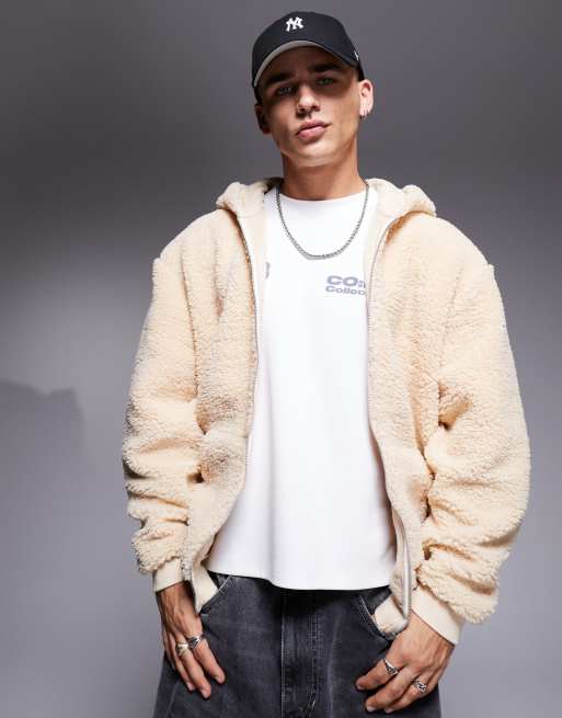 ASOS DESIGN - Felpa oversize bianca in pile borg con cappuccio e zip