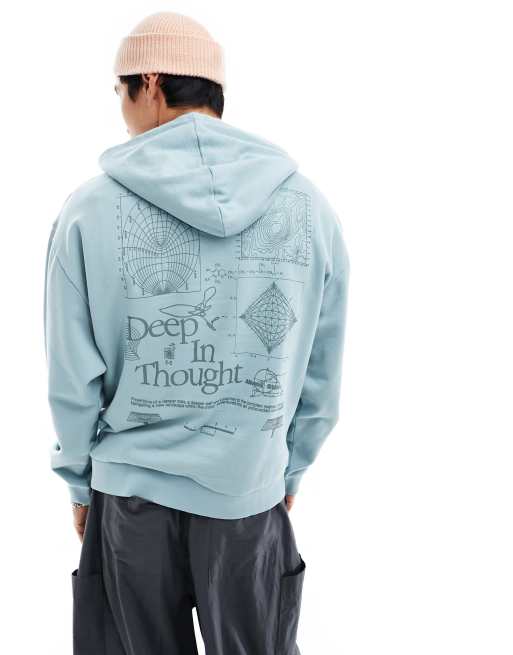 ASOS DESIGN - Felpa oversize blu con cappuccio e stampa sul retro