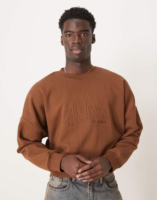 ASOS DESIGN - Felpa oversize corta marrone con spalle scese e ricamo