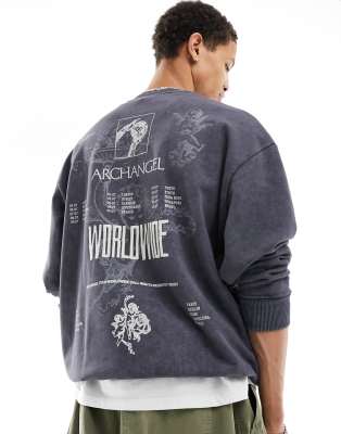 ASOS DESIGN - Felpa oversize grigia con stampa ricamata sul retro