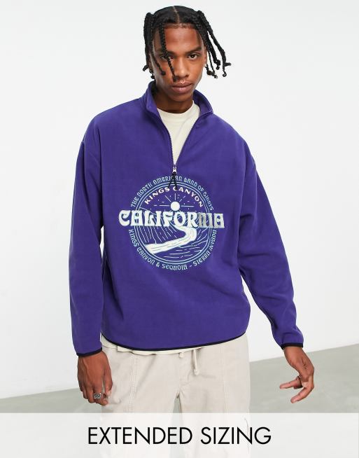 ASOS DESIGN - Felpa oversize in pile polar blu navy con città ricamata e zip corta