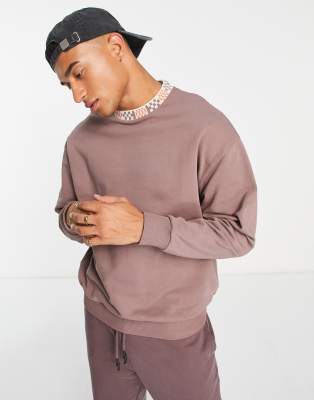ASOS DESIGN - Felpa oversize marrone slavato con finitura a scacchi