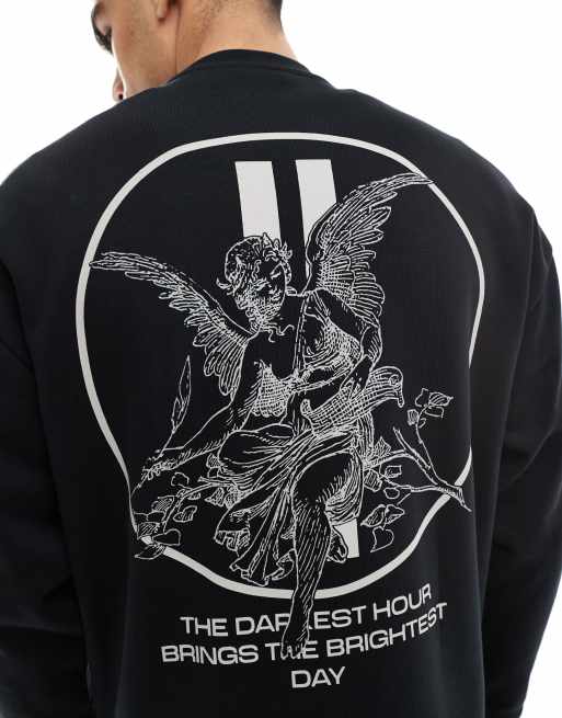 ASOS DESIGN - Felpa oversize nera con stampa di cherubino sul davanti