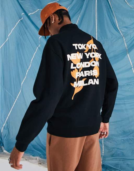 ASOS DESIGN - Felpa oversize nera con zip corta e stampa di città sul davanti e sul retro