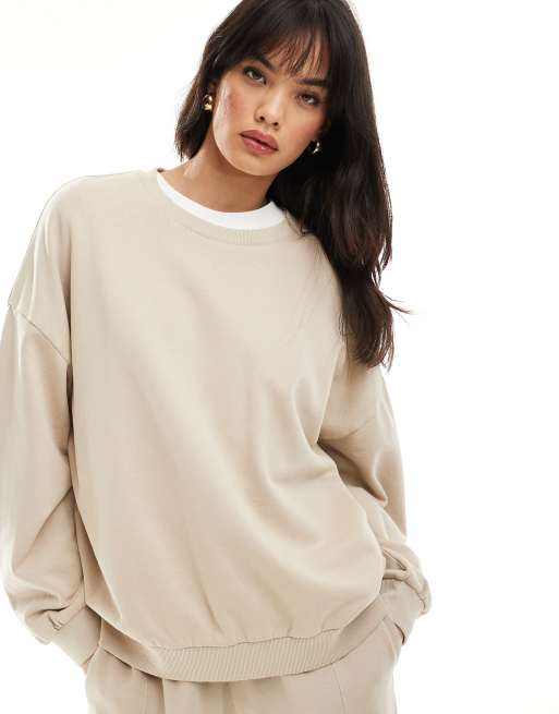 ASOS DESIGN - Felpa oversize pietra slavato