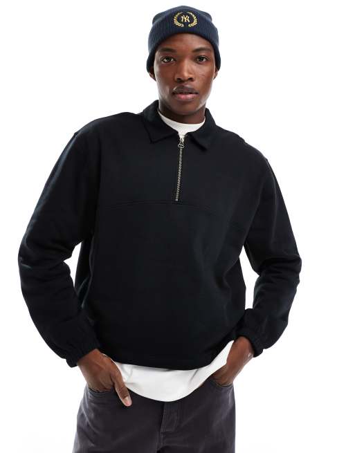 ASOS DESIGN - Felpa oversize squadrata nera con colletto