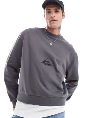 ASOS DESIGN - Felpa squadrata grigia con stampa