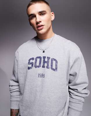 ASOS DESIGN - Felpa squadrata grigio mélange con stampa "Soho"