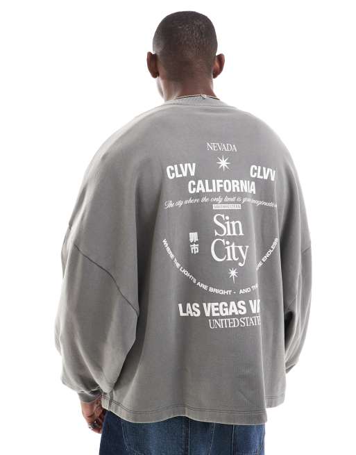 ASOS DESIGN - Felpa super oversize antracite con stampa sul retro e fondo cucito