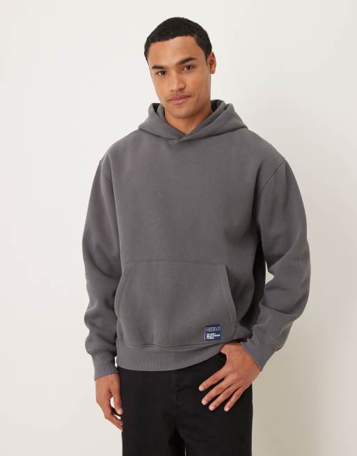 ASOS DESIGN - Felpa vestibilità comoda color antracite slavato con cappuccio ed etichetta intessuta