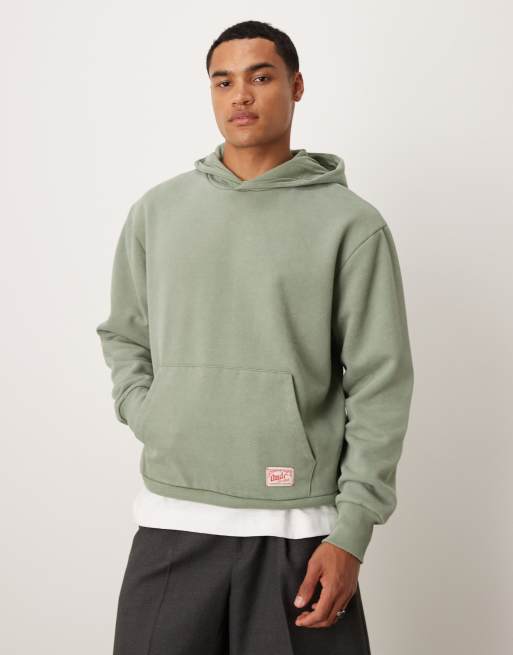 ASOS DESIGN - Felpa vestibilità comoda color verde slavato con cappuccio ed etichetta intessuta
