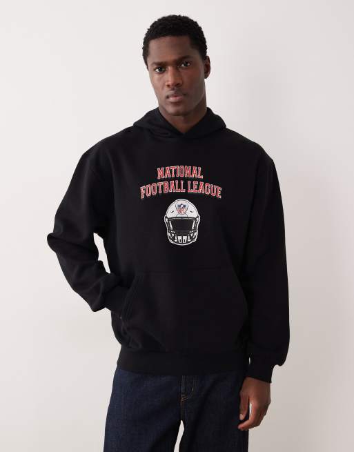 ASOS DESIGN - Felpa vestibilità comoda con cappuccio e stampa NFL nera