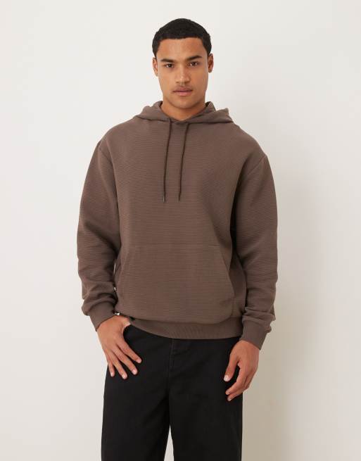 ASOS DESIGN - Felpa vestibilità comoda in tessuto pesante effetto scuba marrone con zip e cappuccio