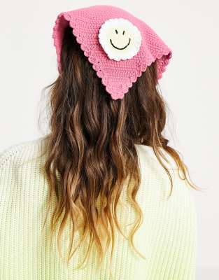 ASOS DESIGN - Foulard all'uncinetto rosa con faccina sorridente