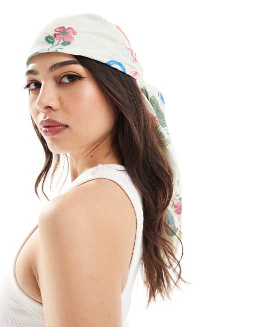 ASOS DESIGN - Foulard bianco con stampa cartoline