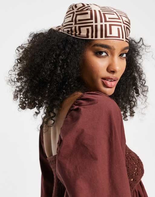 ASOS DESIGN - Foulard medio in raso di poliestere con stampa di monogrammi color crema