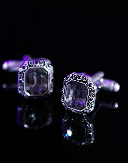 ASOS DESIGN - Gemelli argentati con pietra nera e strass