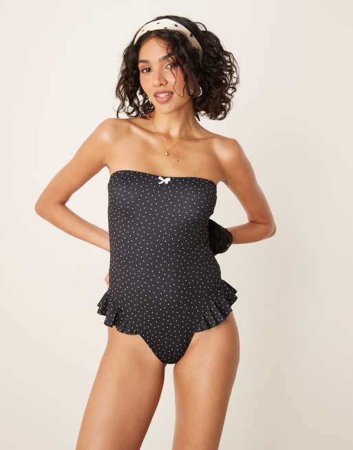 ASOS DESIGN - Gerri - Costume da bagno a fascia nero a pois