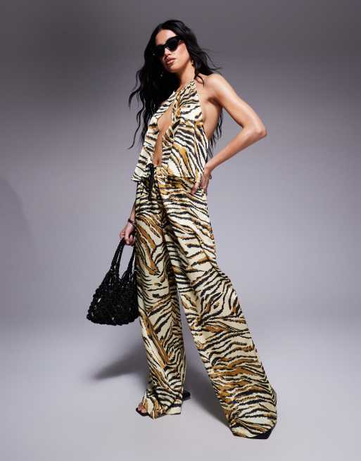 ASOS DESIGN - Gia - Pantaloni da mare in raso con stampa animalier