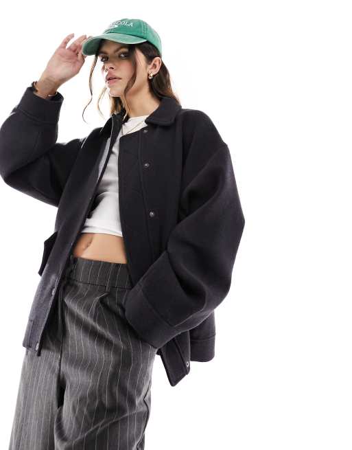 ASOS DESIGN - Giacca bomber in misto lana blu navy scuro