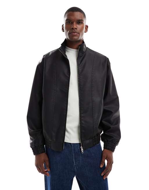 ASOS DESIGN - Giacca bomber in pelle sintetica nera slavata